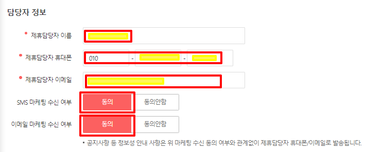 5. 사업자 등록증과 일치하는 사업자 정보를 입력합니다.