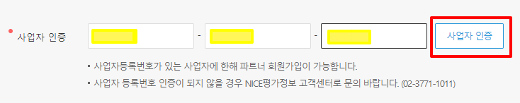 사업자 등록번호가 nice에 등록이 되지 않았다는
